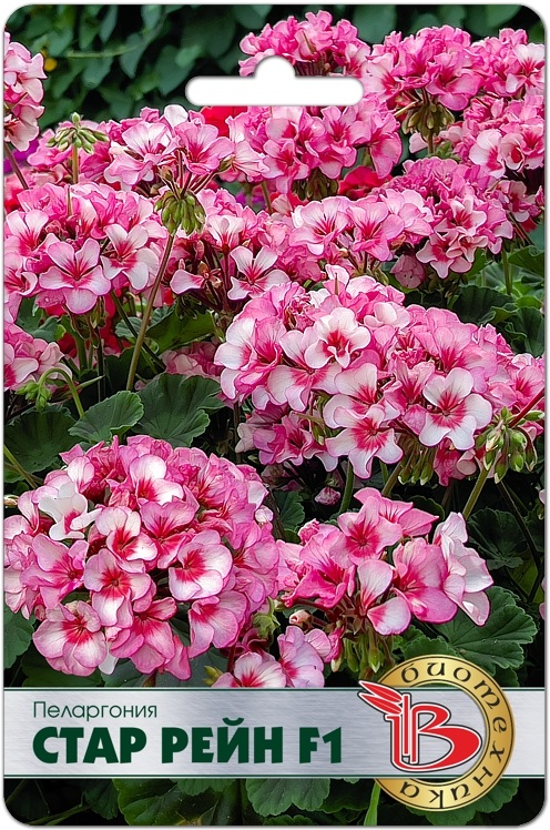 Профессиональная пеларгония с необычной расцветкой. Растения имеют мощный рост, очень плотные и крепкие, высотой 30-40 см, цветы собраны в плотные шаровидные соцветия диаметром до 15 см на коротких цветоносах, что делает их устойчивыми к дождю и ветру. Цветение раннее – цветоносы закладываются еще на стадии рассады. Соцветия очень крупные, на коротких цветоносах. Цветение очень продолжительное. Прекрасное решение как для вазонов, так и для клумбы.
