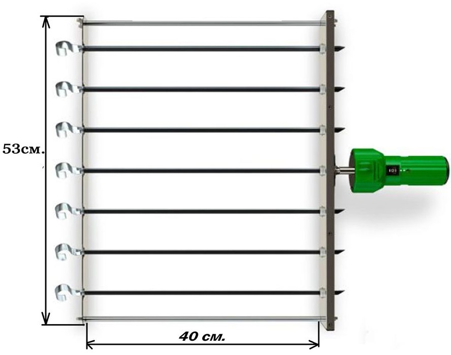 Расстояние между шампурами: 7 см.