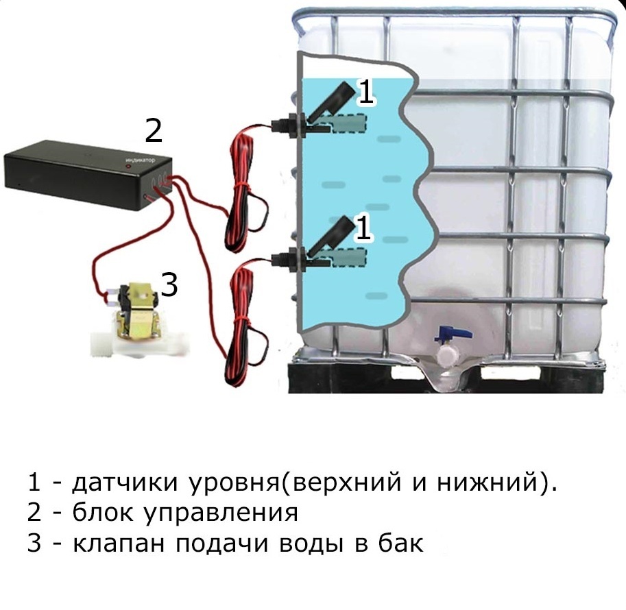 Устройство автоматизированного наполнения ёмкости водой предназначено для бака или еврокуба из которых ведётся полив на садово-огородном участке. Устройство исключает полив холодной водой. Благодаря полной смене воды при каждом наполнении – вода всегда остается чистой.