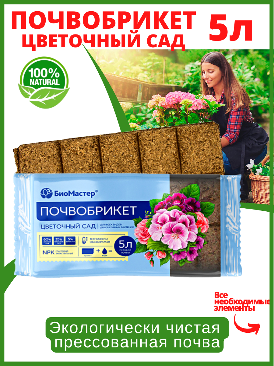 Ухоженный, полный ярких цветов сад – это результат труда и любви садовода к растениям! Позаботьтесь о красоте и здоровье ваших растений с прессованной почвенной смесью «Цветочной сад». Подарите цветам качественную основу для роста, и они вас обязательно удивят!