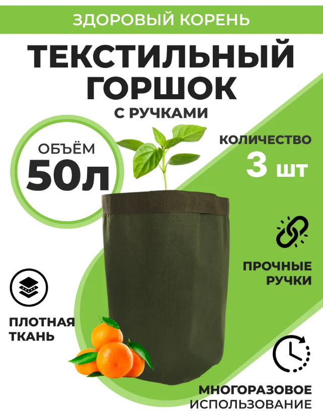 Тканевый контейнер создаёт эффект воздушной подрезки корней. Когда корень доходит до стенки, он не закручивается, как в пластиковом горшке, а останавливает рост и начинает формировать боковые ответвления. В результате развивается мощная и разветвленная корневая система, обеспечивающая растению устойчивость, ускоренное развитие и лучшую приживаемость при пересадке.