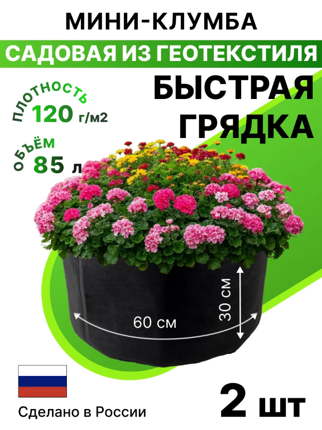 Текстильная клумба — это объёмный контейнер из плотного агротекстиля, предназначенный для групповой посадки растений. Основное действие — создание компактной, удобной, воздухопроницаемой «грядки» без строительства, копки и подготовки почвы на участке. Клумба позволяет выращивать сразу несколько растений в одном объёме, обеспечивая равномерную аэрацию, защиту от перегрева, влаги и вредителей. |