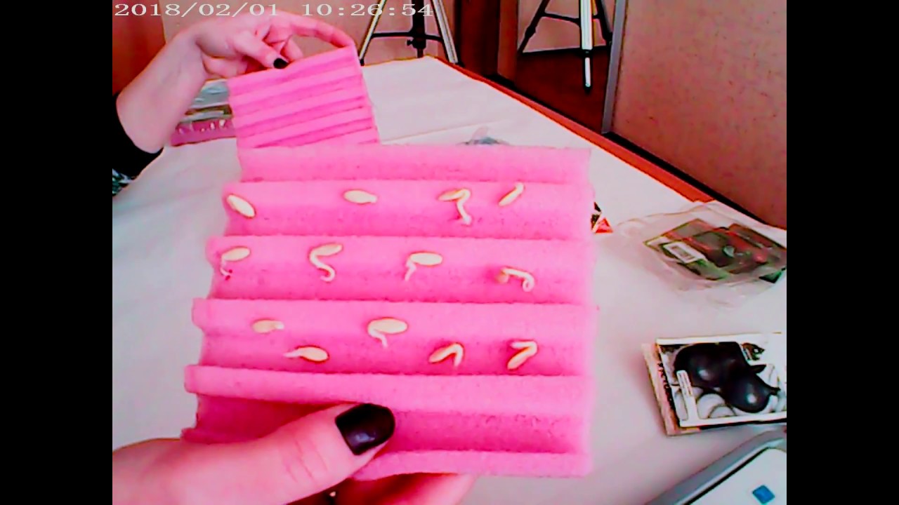 Разделите 2 половинки матрасика. Перед его применением изучите семена, которые вы хотите прорастить. Представьте, как будет развиваться семя и сколько понадобиться места его корешку.