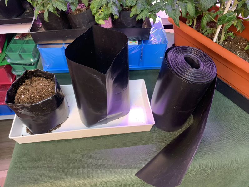 Главное преимущество полиэтиленового рукава — это полная свобода в формировании объёма: можно сделать как совсем маленькие пакеты для микрозелени и зелени, так и крупные контейнеры до 24 литров и выше — для временного содержания саженцев, черенков, даже многолетников и кустарников.