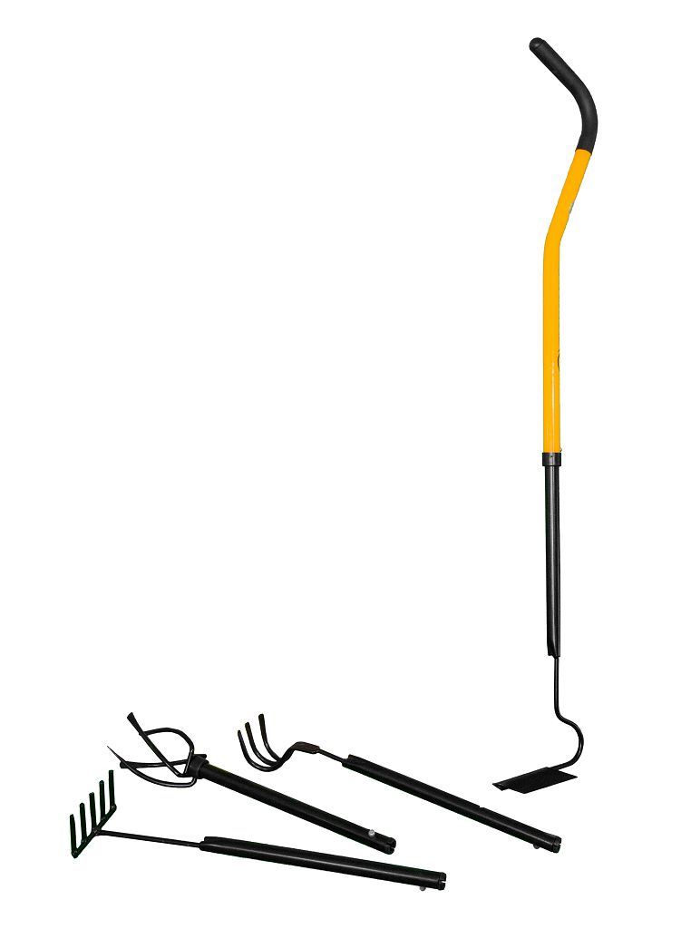Садовый набор МИНИ-4 поможет Вам обработать, прорыхлить небольшой участок перед посадкой или в междурядьях, между цветами, густо посаженной рассадой, молодым растениями, в местах, где сложно или нежелательно работать тяпкой или, тем более, лопатой. Сделать быстро, без наклона, аккуратную лунку или борозду для посадки семян, цветков, растений или рассады, сгрести опавшие или сухие веточки, листья, мелкие сорняки, меняя насадки эргономичной рукоятки.