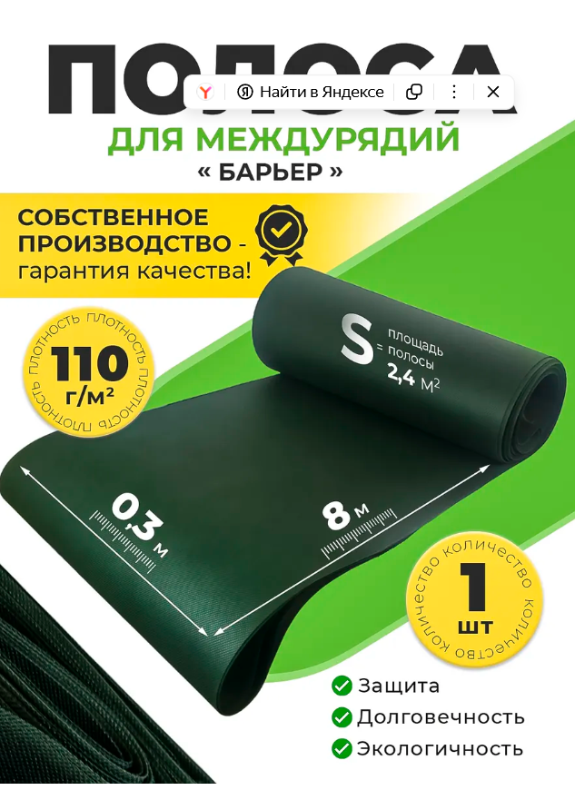Укрывной материал защитная полоса для междурядий и грядок от сорняков с УФ стабилизатором зеленая 110 г/м2, 0,3 х 8 м - оптимальное решение для вашего сада.