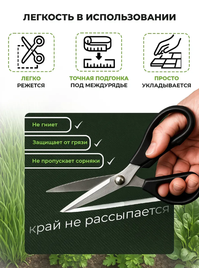 Прочный и долговечный спанбонд сокращает необходимость ручного пропалывания, экономит ваше время и силы. Укрывной материал может служить несколько лет без необходимости замены. Дорожка для грядок не требует уборки на зиму.