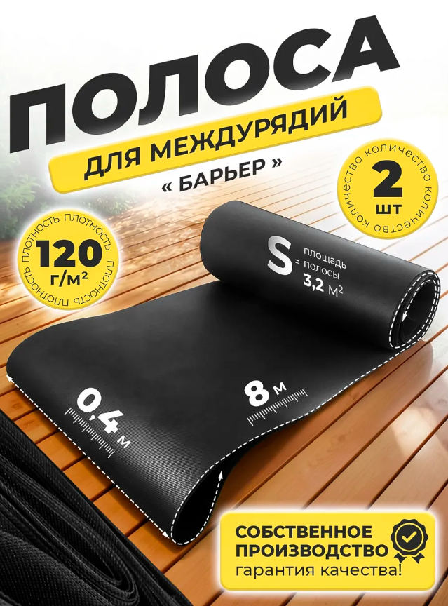 Применение:- Защитная полоса укладывается между рядами культурных растений, предотвращая появление сорняков и уменьшая конкуренцию за питательные вещества, влагу и свет.- Используется в овощеводстве, садоводстве и на дачах для защиты как однолетних, так и многолетних растений.- Также может помочь в удержании влаги в почве, что особенно важно в сезоны с недостатком осадков. |