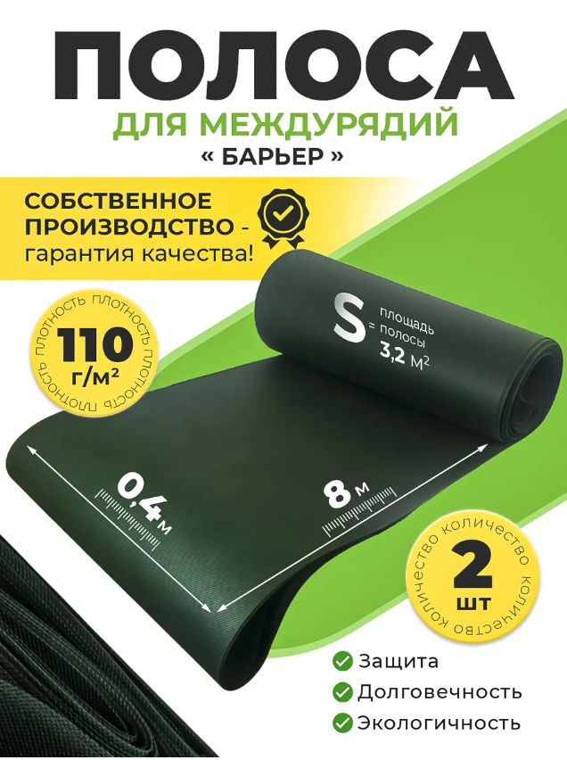 Применение: - Защитная полоса укладывается между рядами культурных растений, предотвращая появление сорняков и уменьшая конкуренцию за питательные вещества, влагу и свет. - Используется в овощеводстве, садоводстве и на дачах для защиты как однолетних, так и многолетних растений. - Также может помочь в удержании влаги в почве, что особенно важно в сезоны с недостатком осадков. |