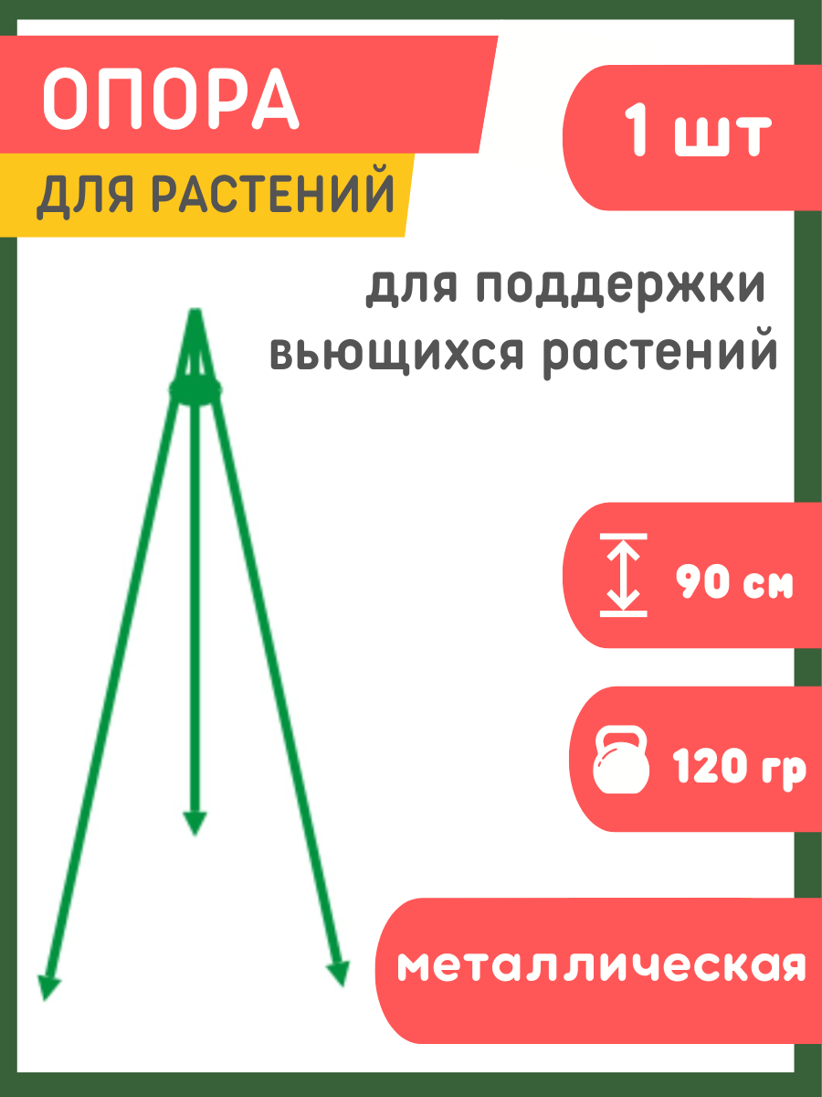 Опора для растений в саду - лёгкая и прочная конструкция из металлических направляющих служит идеальной опорой для поддержки растений. Держатель садовый используется для вьющихся растений таких как: огурцы, кабачки, горох, фасоль, а также для поддержки цветов с длинными стеблями - тюльпанов, гвоздик, хризантем. Преимущества опоры для растений: высокая прочность на излом; неприхотлива в уходе; легко входит в песок и грунт; долгий срок эксплуатации. Комплект: 3 колышка. Высота: 900 мм.