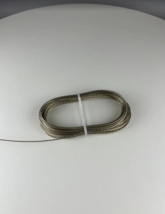 Он служит более долговечной альтернативой шпагату и проволоке. Сердечник из стальной проволоки обеспечивает прочность, а полимерная оболочка из ПВХ защищает металл от влаги и ржавчины.