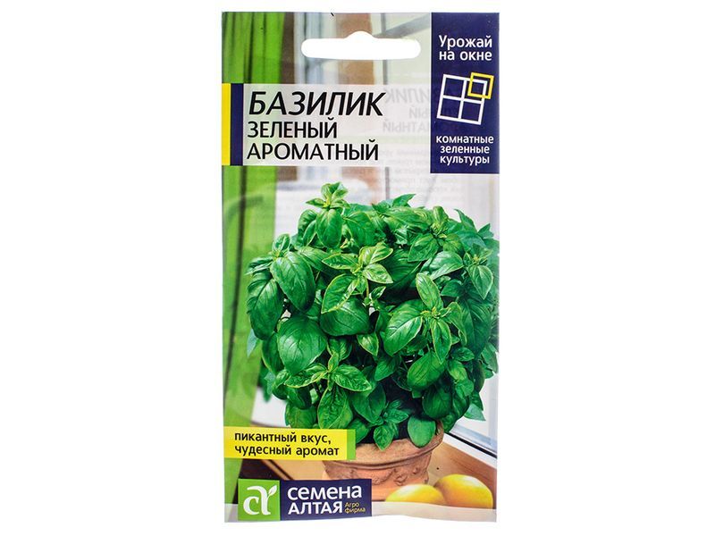 Среднеранний урожайный сорт для выращивания в защищенном грунте, под временными пленочными укрытиями, в открытом грунте, а также в комнатных условиях как горшечная культура. Куст прямостоячий, компактный, полураскидистый, хорошо облиственный, высотой 40-50 см. Листья широкие, слабопузырчатые, темно-зеленые. Ценится за пикантный вкус, чудесный аромат. Базилик богат витаминами, минеральными веществами, обладает тонизирующими свойствами, улучшает пищеварение. Свежие и сухие листья базилика применяют как приправу в кулинарии, а также при засолке и консервировании. Хорошо растет на легких, богатых перегноем почвах. Свето- и теплолюбив. При посеве в качестве горшечной культуры необходим дренаж. Необходимый объем кашпо 3-4 литра. Семена размещают на слегка утрамбованный грунт и присыпают слоем земли 1-2 см, опрыскивают теплой водой, накрывают пленкой и помещают в теплое место до появления всходов. При появлении всходов горшки открывают и помещают в теплое место (t не ниже 20-25°C), без сквозняков. Для предотвращения вытягивания необходима досветка фитолампами. Полив проводят теплой водой по мере подсыхания субстрата.