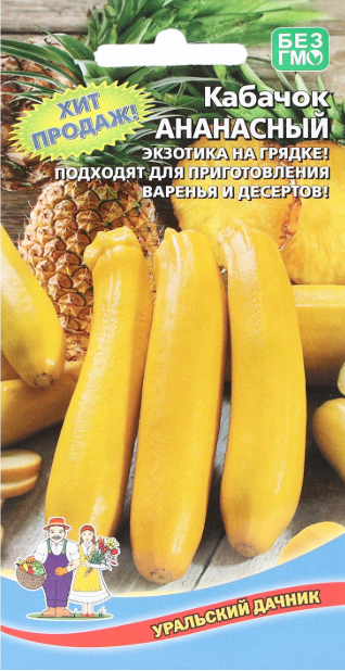 Новый скороспелый кустовой сорт преимущественно женского типа цветения. Плоды золотисто-оранжевые, удлинённо-цилиндрические, с небольшой семенной камерой, массой 600-800 г. Мякоть жёлтая, плотная, сочная, очень вкусная.