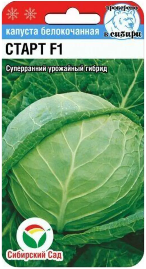 Семена Капуста белокочанная Старт F1 10шт. Суперранний гибрид (от высадки рассады до уборки 38-40 дней). Кочан округлый, светло-зеленой окраски, массой 1,2-1,5 кг, средней плотности, с короткой внутренней кочерыгой. Вкусовые качества в свежем виде отличные. Гибрид устойчив к возбудителям основных болезней капусты. Схема высадки рассады -50-60x40 см. Урожайность - 5-7 кг с 1 кв. м.