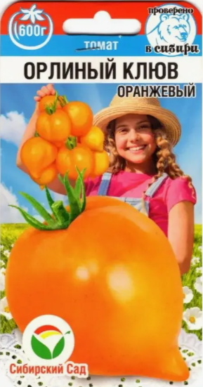 Среднеспелый крупноплодный сорт с оригинальной формой плодов в виде бычьего сердца с клювовидно- изогнутой вершиной. Подобен популярному сорту Орлиный клюв. Ярко отличается апельсиновым цветом красивых плодов, отсутствием зеленого пятна у плодоножки и более сладким вкусом маслянистой мякоти с повышенным содержанием каротина. Сорт успешно районирован в Сибирском регионе. Пластичен, достаточно хорошо приспосабливается к погодным капризам. Можетвыращиваться во всех климатических зона втеплицах иоткрытом грунте (на юге).
