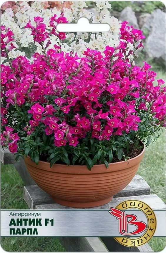 Новая роскошная серия антирринума с необычным открытым азалиевидным цветком. Соцветия напоминают миниатюрные гладиолусы. Растение очень жесткое и прочное, прекрасно противостоит дождям и ветру. Благодаря интенсивному ветвлению, постоянно обновляются цветоносы, обеспечивая длительное, непрерывное цветение. Прорастание:, 10-15 дней при 18-20ºС Рассада: 5-7 недель при 14-16 ºС Высадка рассады: апрель-май Начало цветения: на, 10-12 неделе Цветки азалиевидные, диаметром 3-3, 5 см, лепестки волнистые, что создает эффект “махровых” цветков Необычайное разнообразие расцветок, как ярких, так и пастельных тонов Холодостойкое, прекрасно переносит весенние перепады температур Растение компактное, высотой (вместе с цветоносом) 25-30 см Великолепно подходит для выращивания в контейнерах и горшках, а также прекрасно выглядит в бордюрах