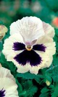 Группа Швейцарские гиганты. Растение с исполинскими цветками, сидящими на короткой и твердой цветоножке. Цветки до 8 см в диаметре, верхние лепестки белые, на 3-х нижних – пятна у основания лепестков. Используют для клумб и бордюров.