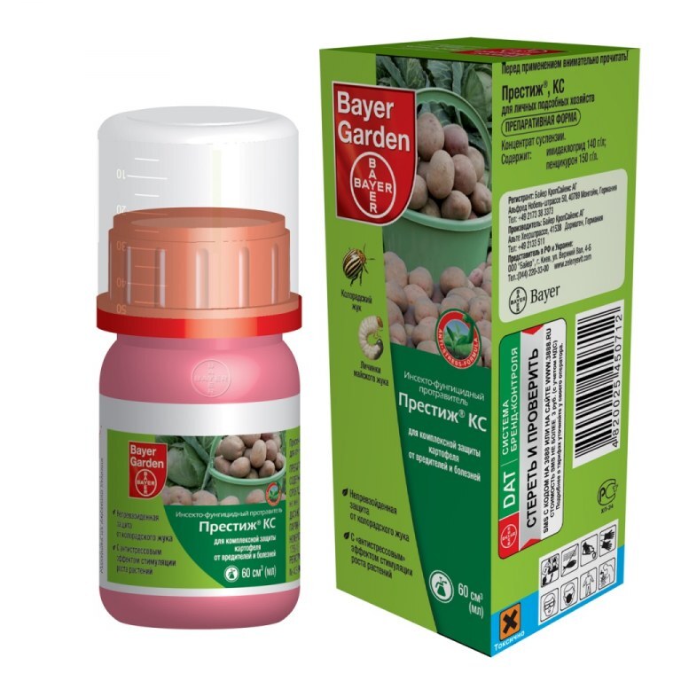 Принцип действия препарата Престиж таков, что средство, распространяется только в вертикальном направлении по растениям, поступая из клубней к ботве, защищая семенной материал и побеги от колорадских жуков и других вредных насекомых.