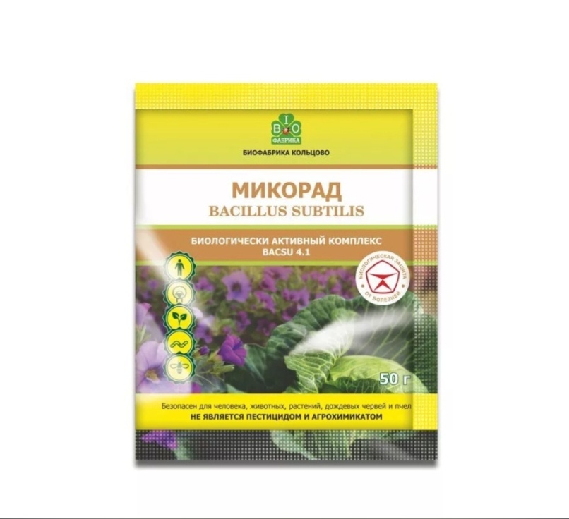 Микорад BACSU 4.1 – экологичный, натуральный и безопасный препарат для защиты урожая, который оздоравливает почву и растения, уничтожая возбудителей болезней. Сенная палочка – это природный антибиотик. Продуктами ее метаболизма также являются аминокислоты, витамины и разные ферменты, которые обогащают почву и улучшают ее свойства. Это положительно влияет на созревание здорового и качественного урожая.