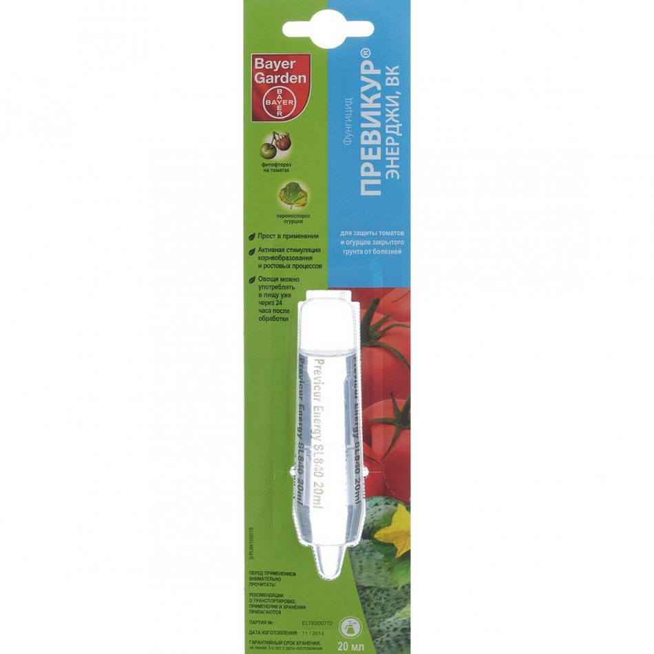Объясняется это тем, что Превикур Энерджи системный фунгицид и вносится в почву. Он не распыляется по листьям, как другие препараты, что ведет к попаданию части раствора на завязи и плоды. Корнями он поднимается из почвы и передвигается во вновь растущие листья, защищая их как минимум 2 недели. В процессе фотосинтеза он не участвует, поэтому не передвигается в растущие и созревающие плоды.
