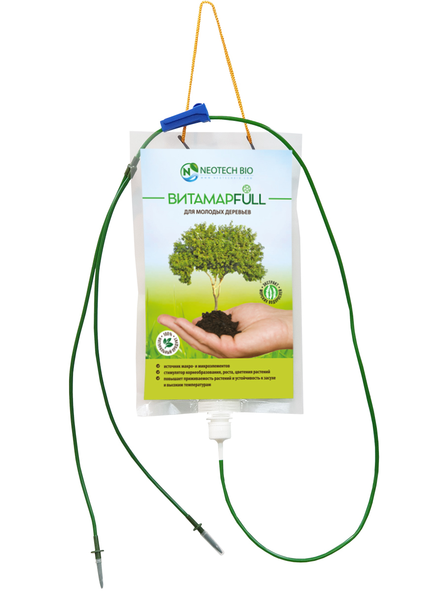 Предназначена для использования на молодых деревьях в качестве источника макро- и микроэлементов, для повышения иммунитета и устойчивости к вирусным, грибным и бактериальным заболеваниям. За счет содержания в растворе наночастиц фуллерена оказывает усиленное антиоксидантное и стимулирующее действие.
