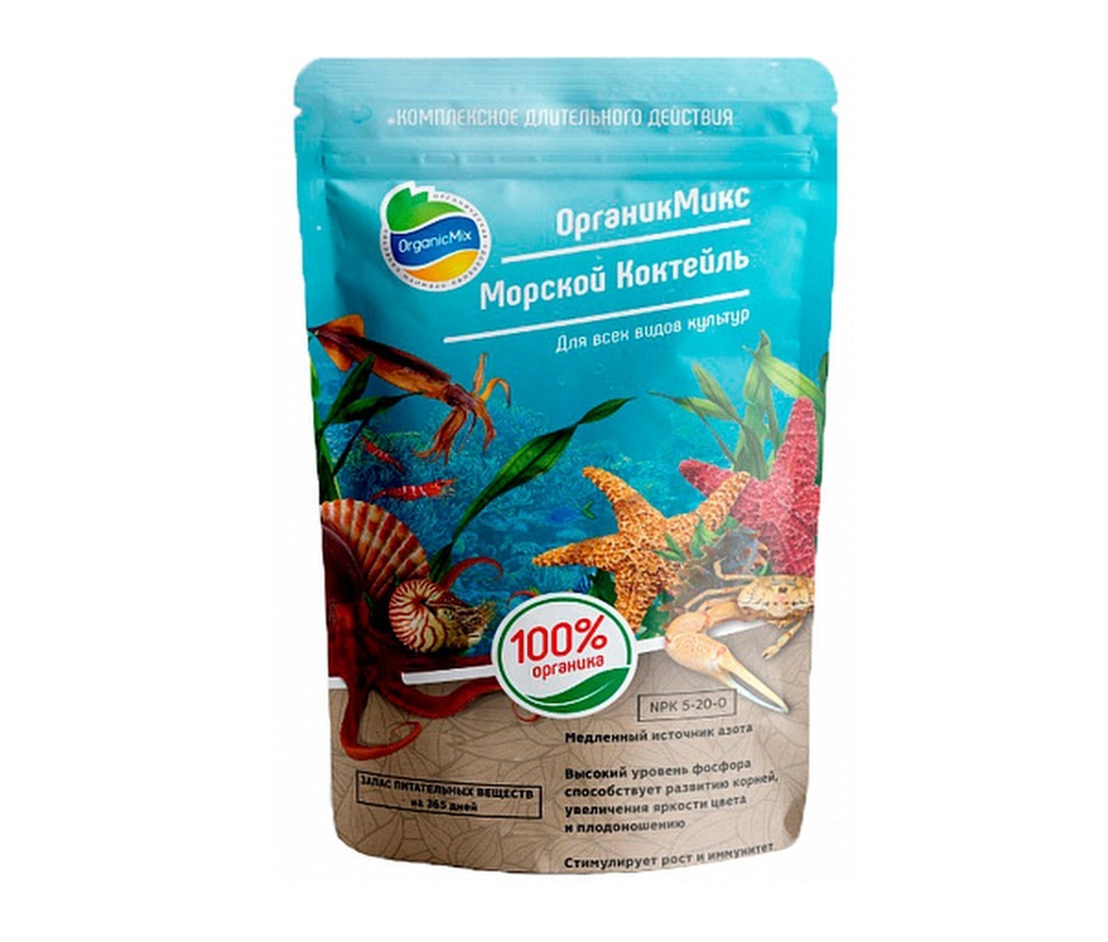 Сверхпитательный коктейль из морских обитателей, который обеспечит любое ваше растение необходимыми элементами в сбалансированном виде. Удобрение можно применять при высадке рассады и для подкормки взрослых растений. Устраняет все виды хлорозов. Комплексное удобрение из остатков морских обитателей (моллюски, крабы, морские звёзды, ракушки и т.д.) Мощный стимулятор роста, благодаря пролонгированному эффекту обеспечивает растение своевременным, длительным питанием. Восстанавливает плодородие почвы, ускоряет образование гумуса.