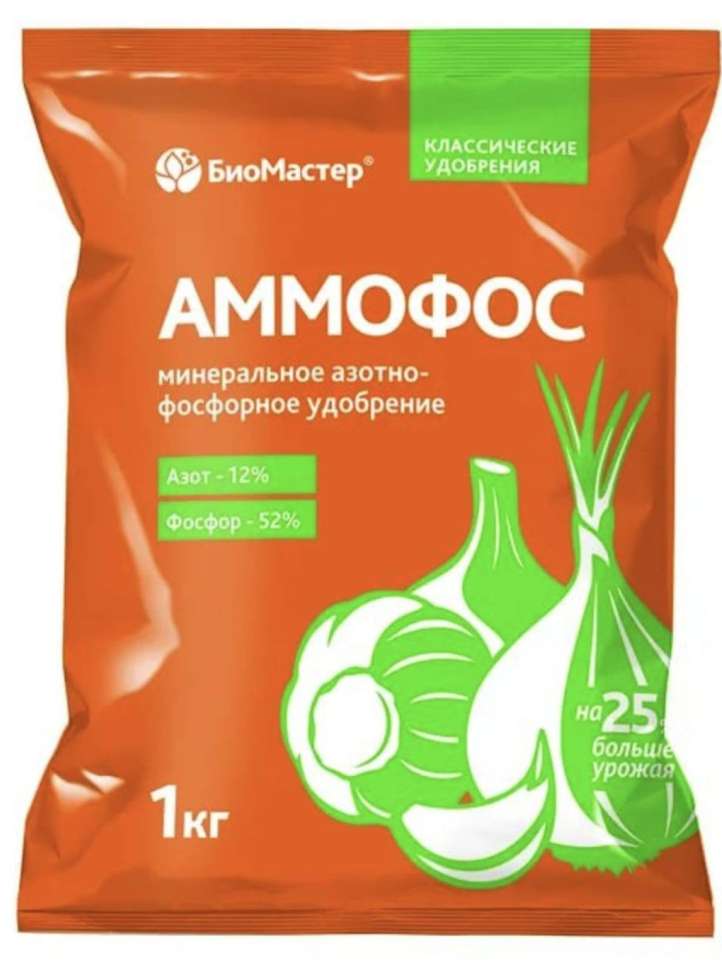 Аммофос – одно из самых эффективных комплексных удобрений, которое подходит для всех видов сельскохозяйственных культур. Содержит 12% азота и 52% фосфора.
